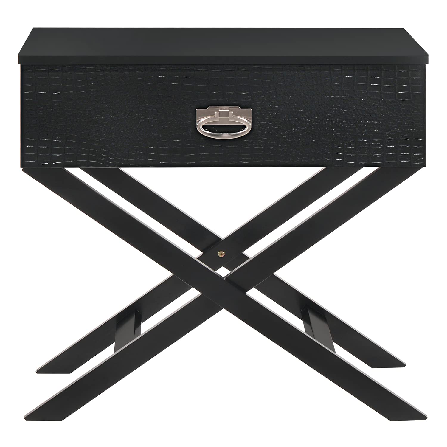 Modern styled "X" frame nightstand with "croc" textured drawer front will complement your living room. EZ assembly frame mounts easily to drawer unit. Can be used as an end table or nightstand. Available in a...